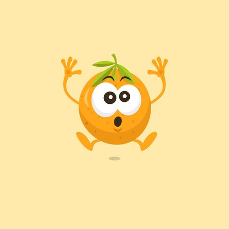 オレンジ色のかわいいマスコットのイラストは怖がって上分離光オレンジ色の背景です のイラスト素材 ベクタ Image