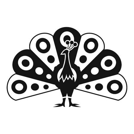 孔雀の装飾的なシルエット アイコン ロゴ プリント タトゥーのテンプレートです 孔雀の尾を開きます フロント ビューのイラスト素材 ベクタ Image