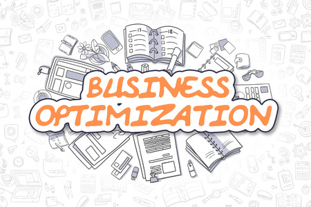 ビジネスの最適化のビジネス イラストです 落書きオレンジ色のテキスト手描き落書きデザイン要素です ビジネス最適化の概念 の写真素材 画像素材 Image