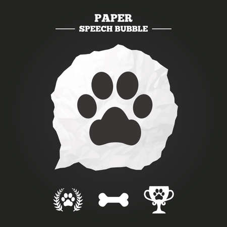 ペット アイコン クラッチ記号で猫の足 勝者月桂樹の花輪とメダル記号です ペット食品です アイコンの吹き出しを紙します のイラスト素材 ベクタ Image