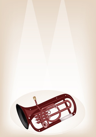 音楽楽器 コピー領域とテキスト ビンテージ アンティーク真鍮 Tuba またはホワイト ラベルとユーフォニアムの茶色の色に装飾されたイラストのイラスト素材 ベクタ Image