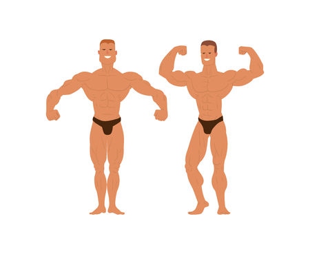プレミアムベクター ボディビルダーのポーズ2つの漫画のキャラクター