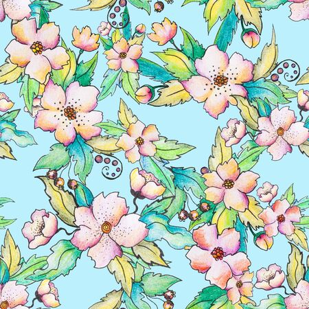 エキゾチックなハワイアン南国の花 ハイビスカス たくさんに囲まれての鉛筆イラストは葉や枝します 花柄シームレス 反復的な背景 布や夏のイラストに最適です の写真素材 画像素材 Image