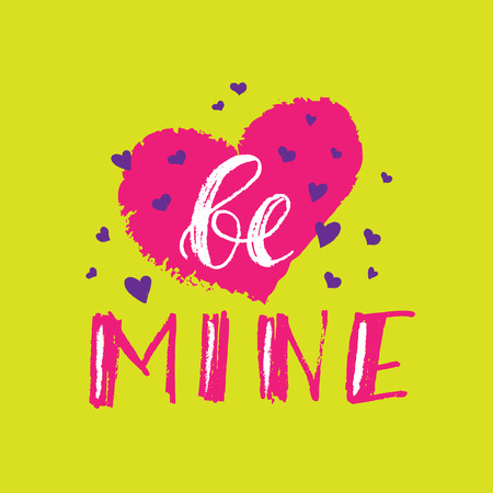 バレンタインデーのための鉱山カードのデザイン要素になります ピンクの背景に隔離されたハートと手描きブラシレタリング ベクトルイラスト カード ポスター Tシャツの手書きテキストのイラスト素材 ベクタ Image